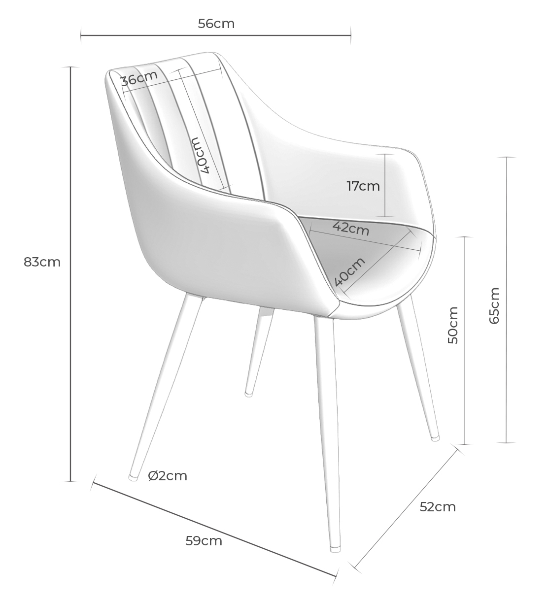 • Altura total de los brazos: 65 cm (17 cm desde el asiento)