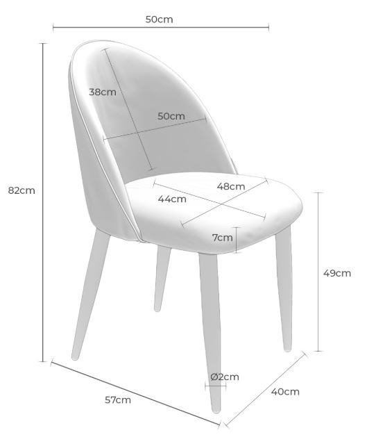 Las medidas son: 51 cm. de ancho x 56,5 cm. de fondo y 83 cm. de alto. La altura del asiento es de 49,5 cm., tiene un fondo de 47 cm. y un ancho de 47,5 cm. La altura del respaldo es de 37 cm. y su ancho es de 35 cm. El peso de cada silla es de 6 kg. y admite un peso de carga de 120 kg.
