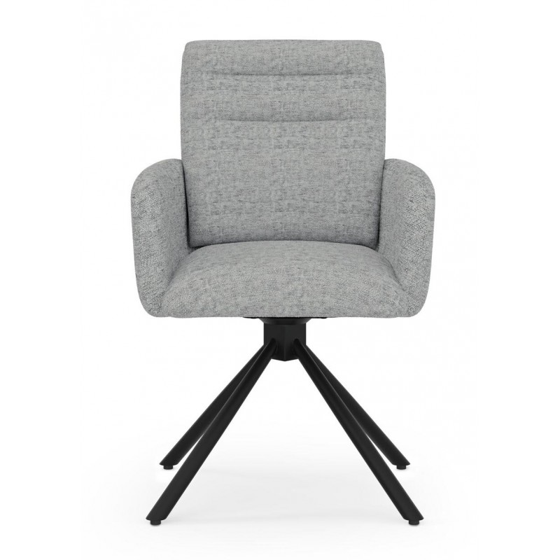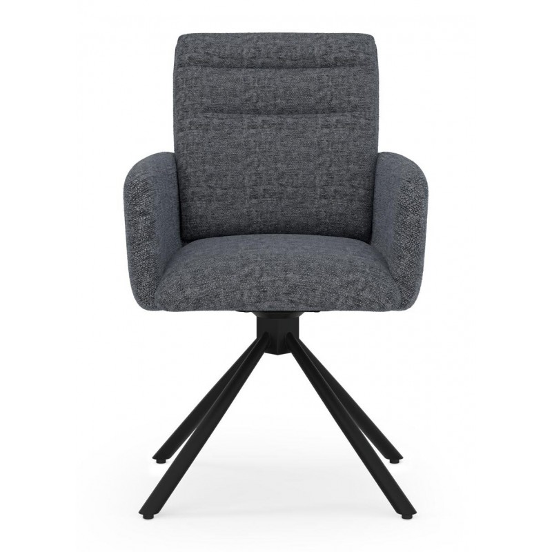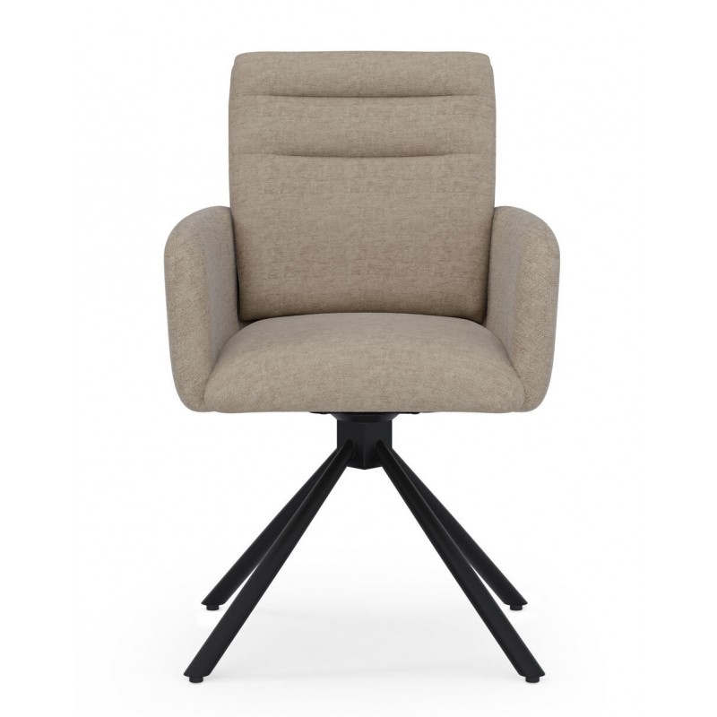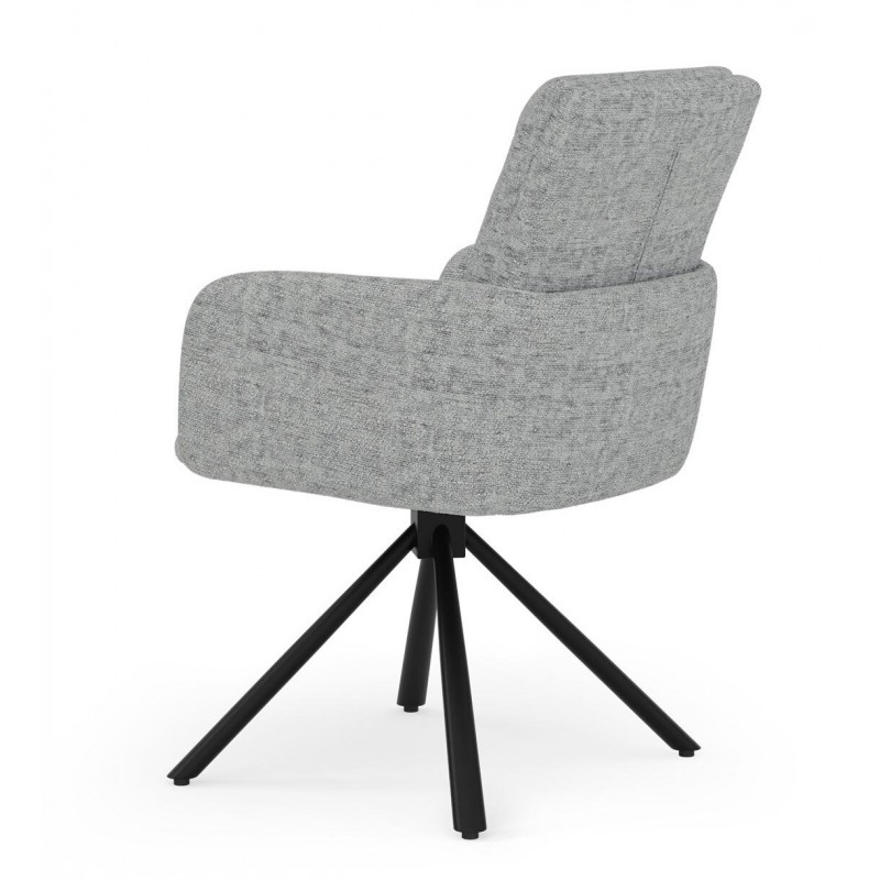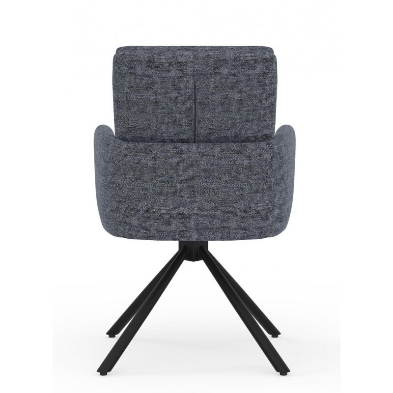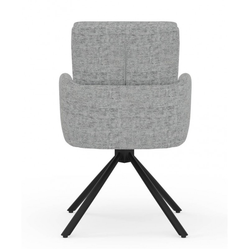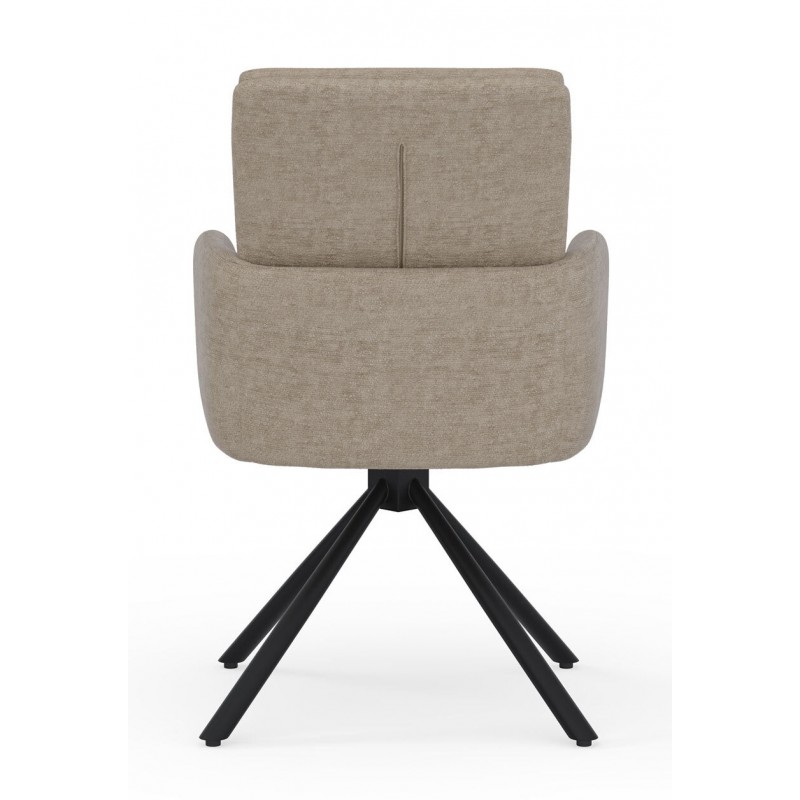 Tapizada en suave tejido chenille, esta silla ofrece una textura agradable al tacto y un acabado visual dinámico, con delicados matices que varían según la luz y la orientación del hilo. El acolchado generoso refuerza la sensación de confort durante un uso prolongado.