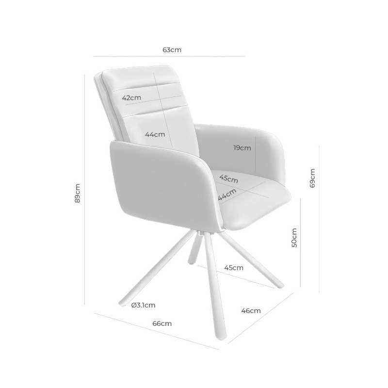 Equipada con un mecanismo giratorio de 180º con sistema de retorno, la silla giratoria LINDA facilita el movimiento sin perder elegancia. Su base metálica negra aporta estabilidad y un estilo moderno, convirtiéndola en una excelente opción para comedores, despachos o salas de reunión.