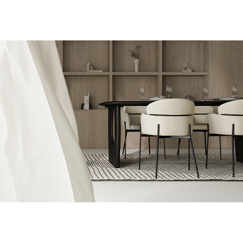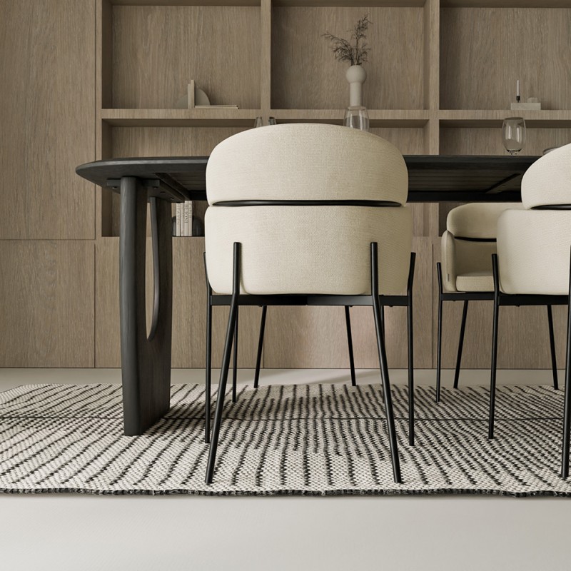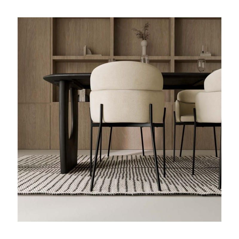 Las patas metálicas en acabado negro mate complementan su silueta esbelta y realzan su estética contemporánea y resistente. Una elección perfecta para quienes valoran diseño y funcionalidad en una sola pieza.
