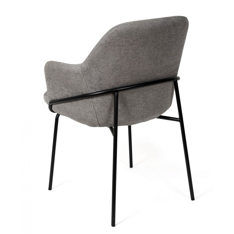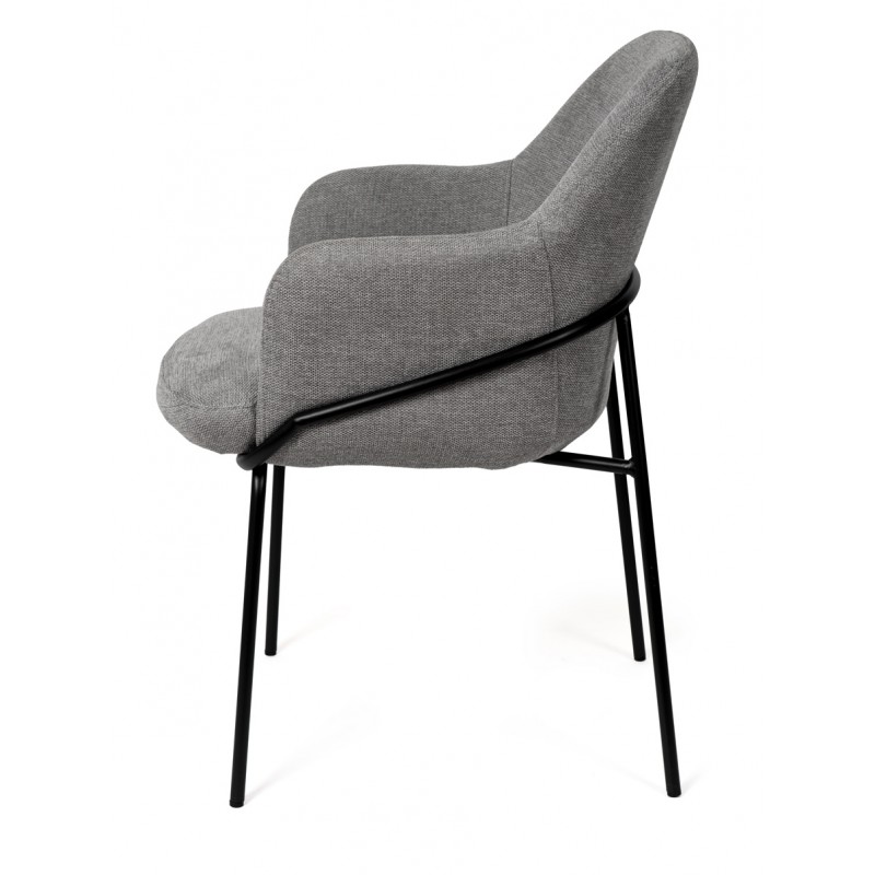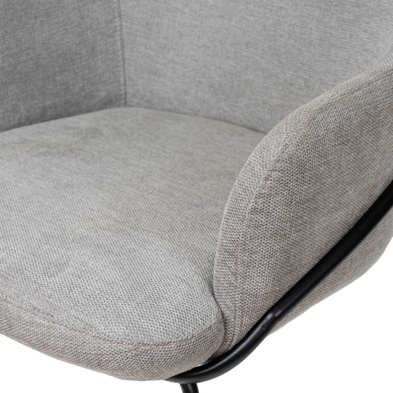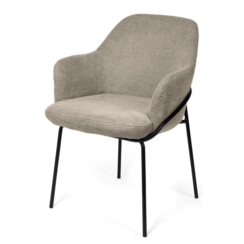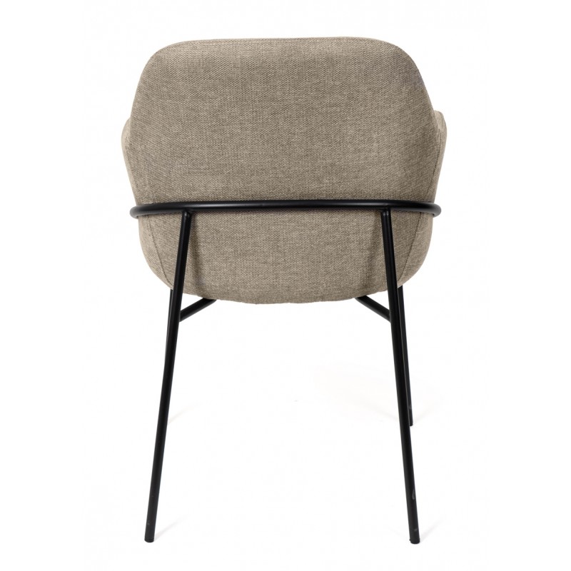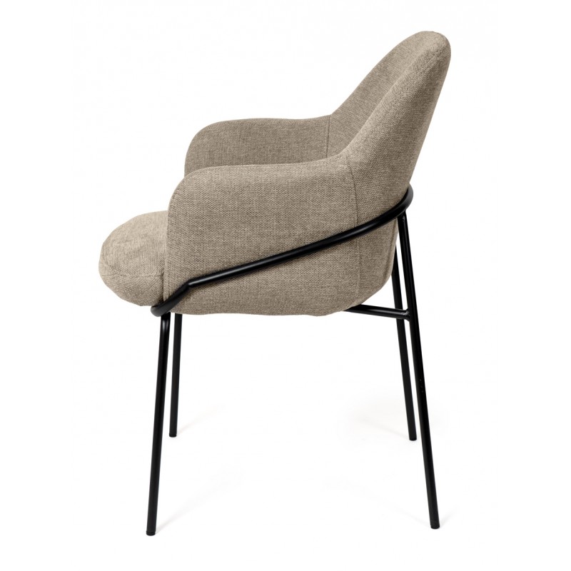 Gracias a su estructura envolvente y su tapizado en tejido STREET ANTIMANCHAS, esta silla se adapta a ambientes contemporáneos, aportando calidez y elegancia sin estridencias. La barra metálica vista en la parte trasera del respaldo actúa como elemento estructural y decorativo, reforzando su estilo.