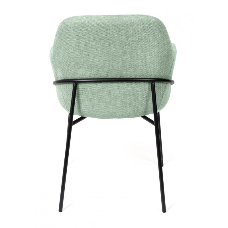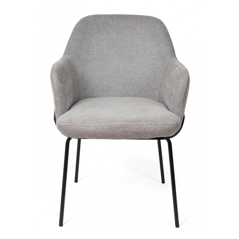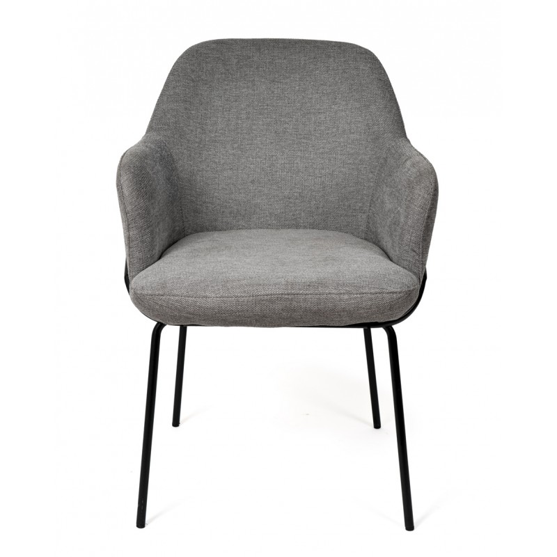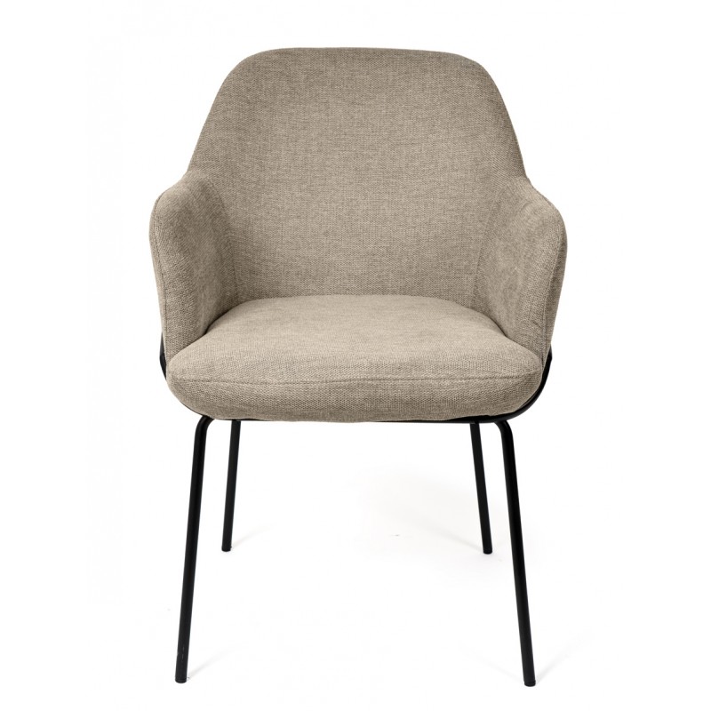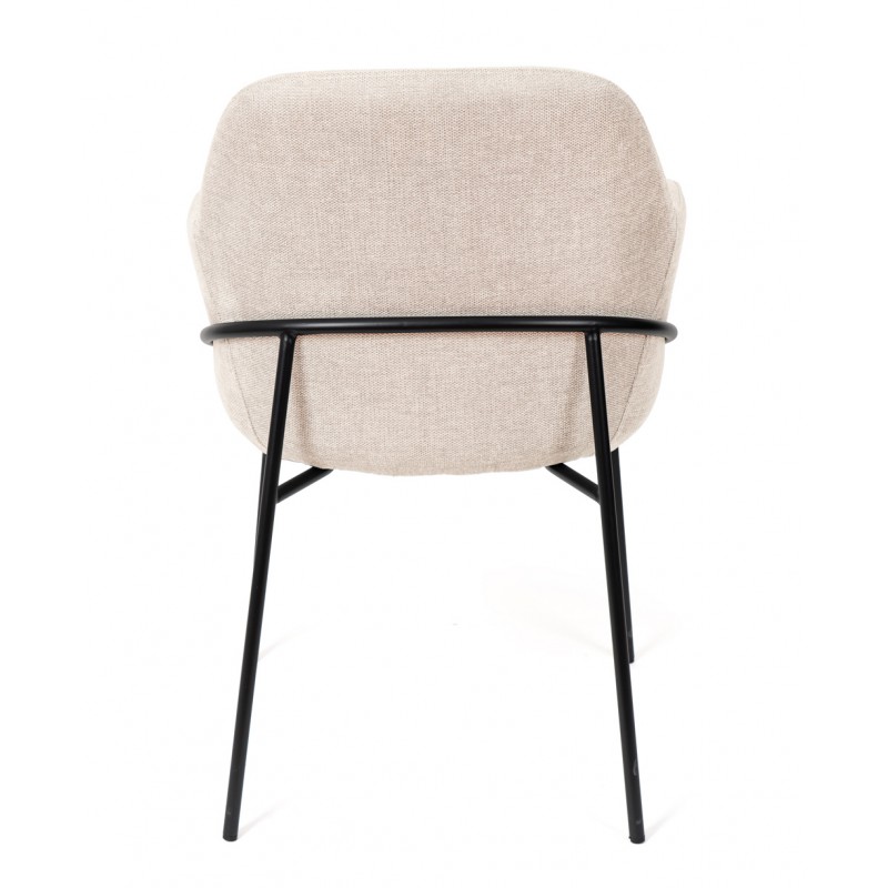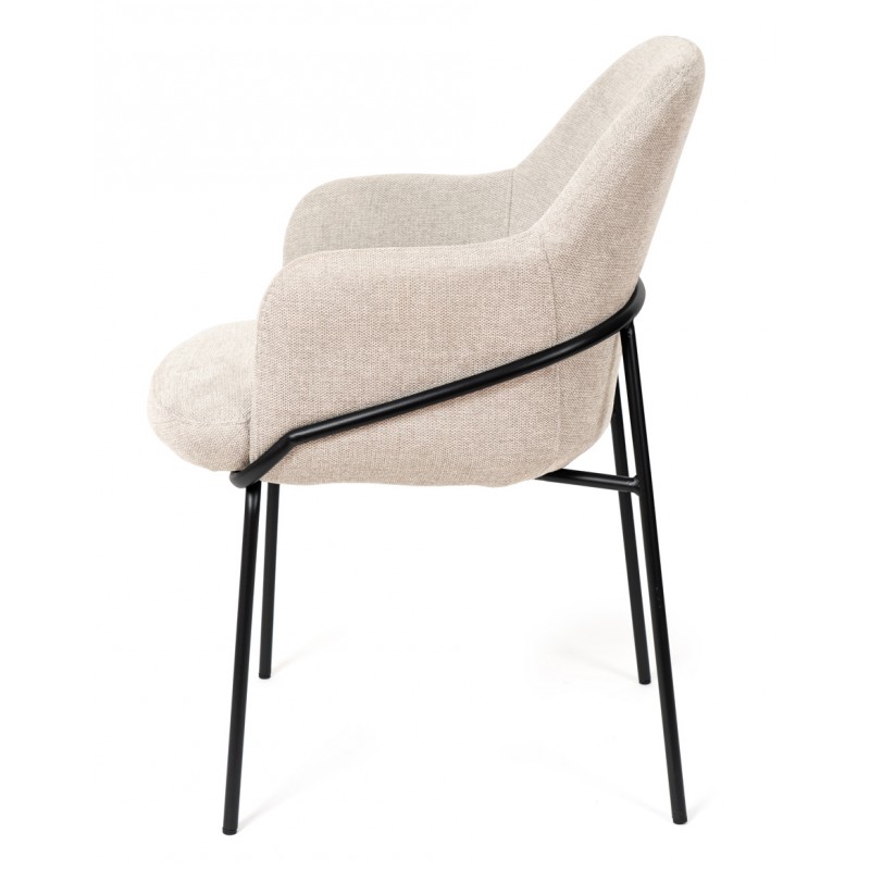 Gracias a su estructura envolvente y su tapizado en tejido STREET ANTIMANCHAS, esta silla se adapta a ambientes contemporáneos, aportando calidez y elegancia sin estridencias. La barra metálica vista en la parte trasera del respaldo actúa como elemento estructural y decorativo, reforzando su estilo.