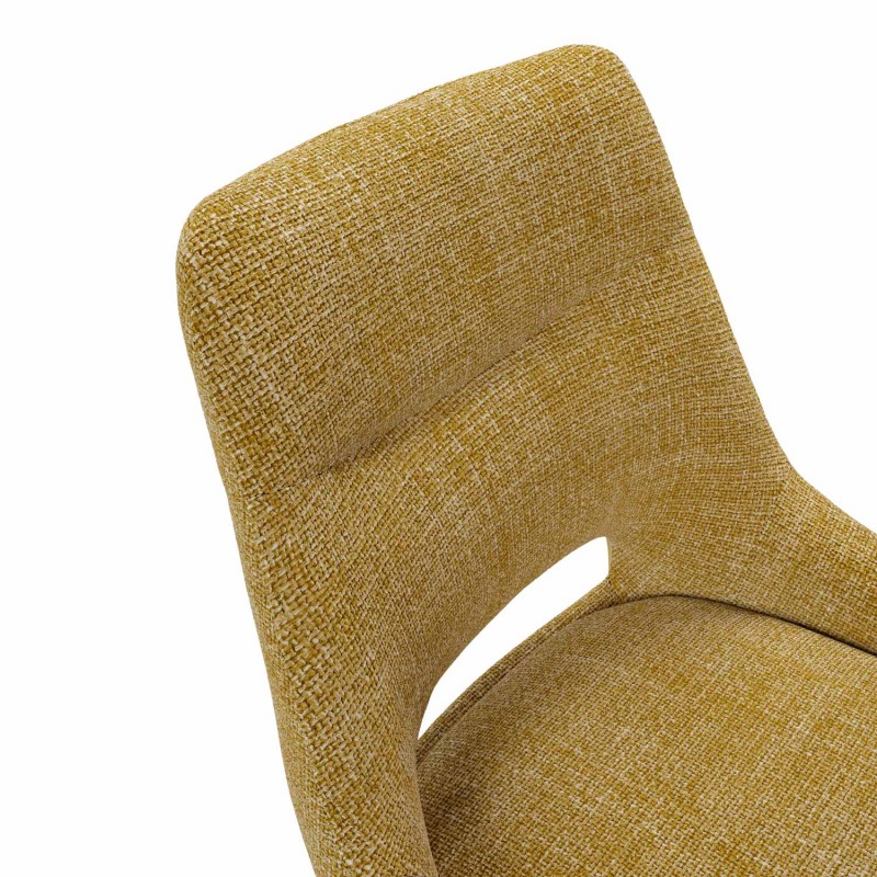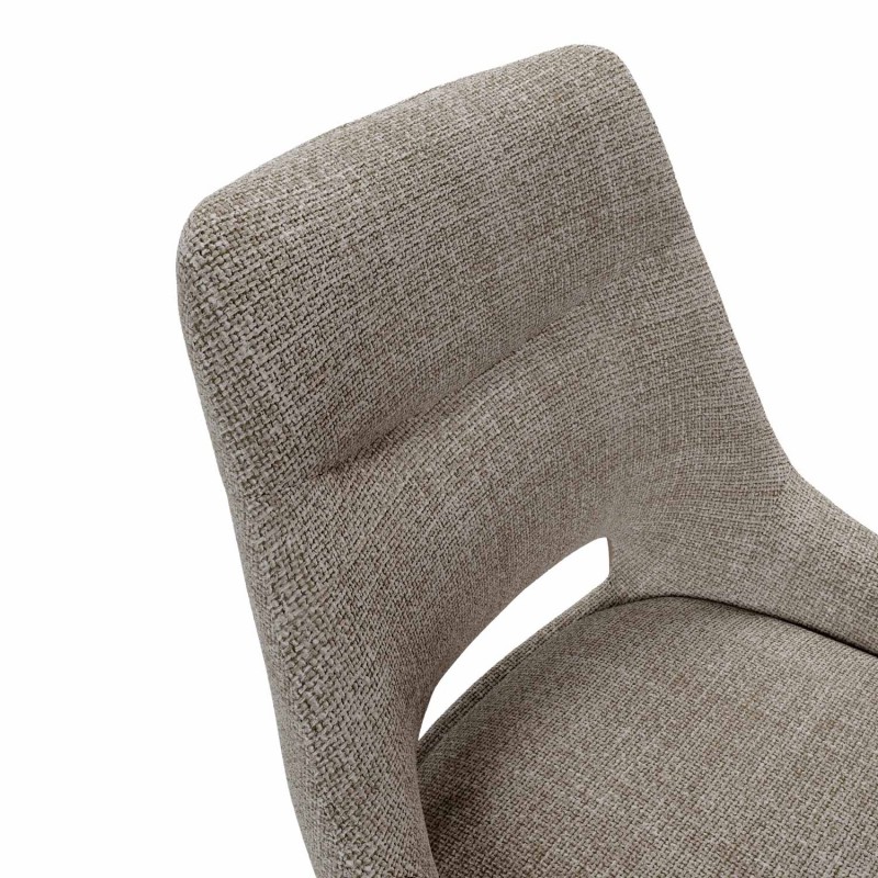 Silla de comedor CALLIE con estructura metálica y asiento acolchado, diseñada para ofrecer una combinación equilibrada entre estética contemporánea, ergonomía y robustez. Su respaldo ancho incorpora una abertura decorativa que aligera visualmente el conjunto y aporta un toque distintivo.