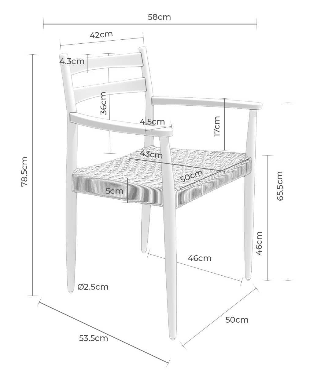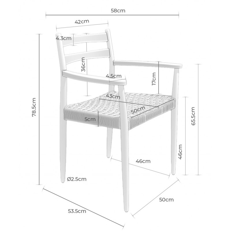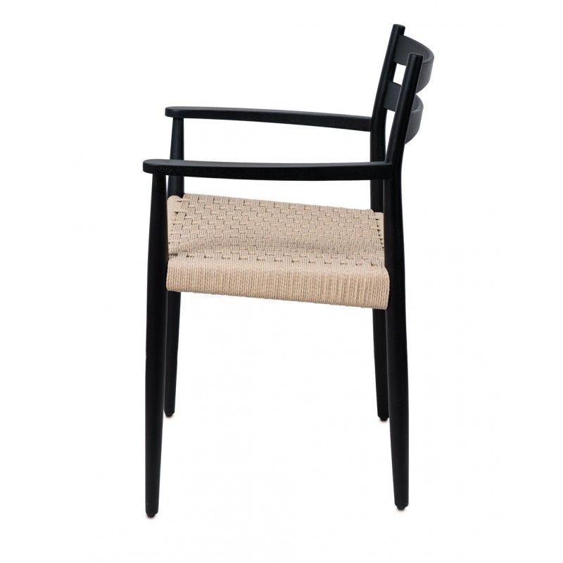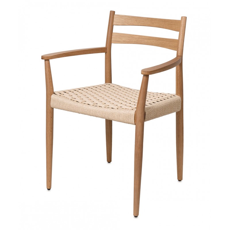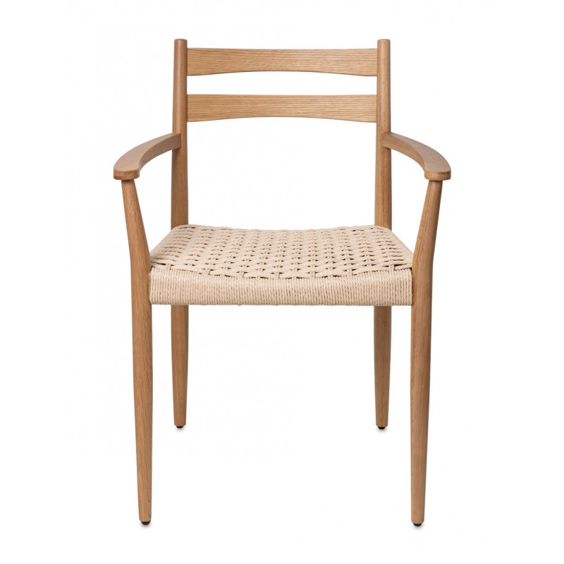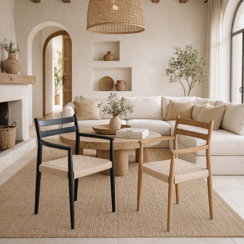 La silla EDNA permite un uso versátil como silla principal de comedor, asiento cómodo para sobremesas largas o apoyo en zonas de lectura. Los brazos ifacilitan una postura más relajada frente a sillas sin brazos, mientras que el asiento de cuerda mejora la ventilación y resulta más fresco en uso continuado.