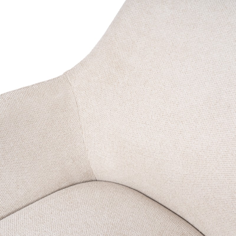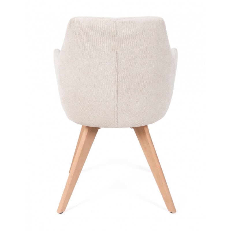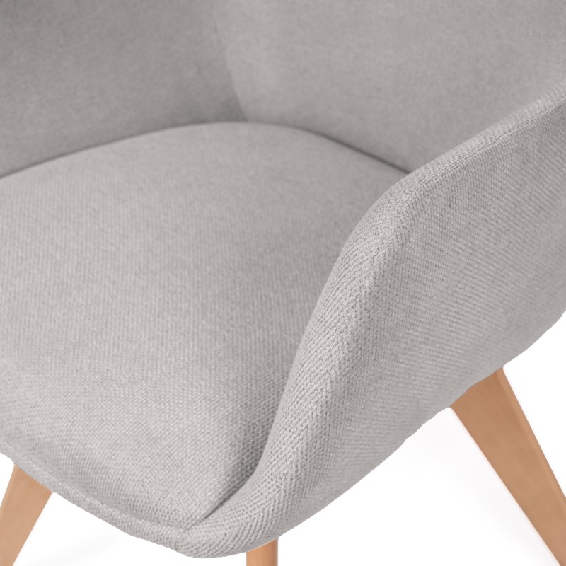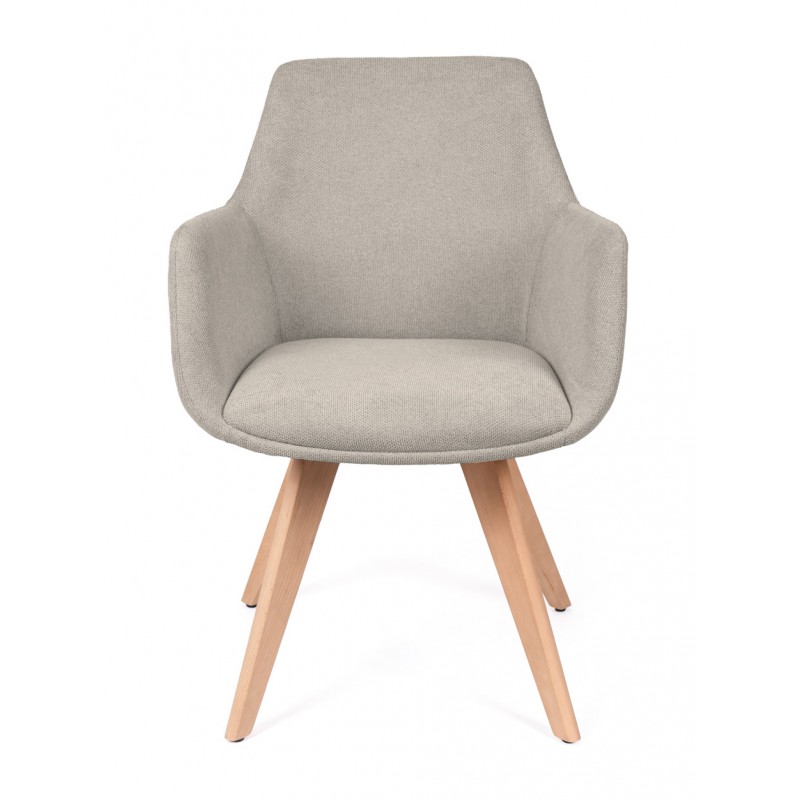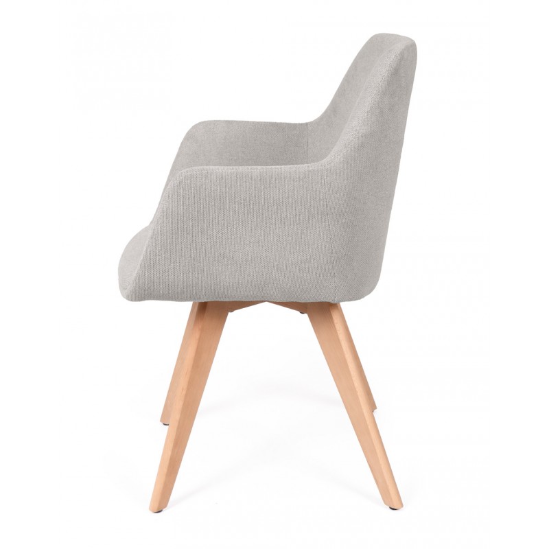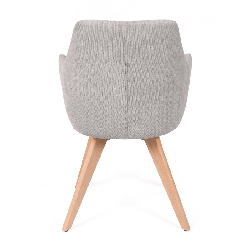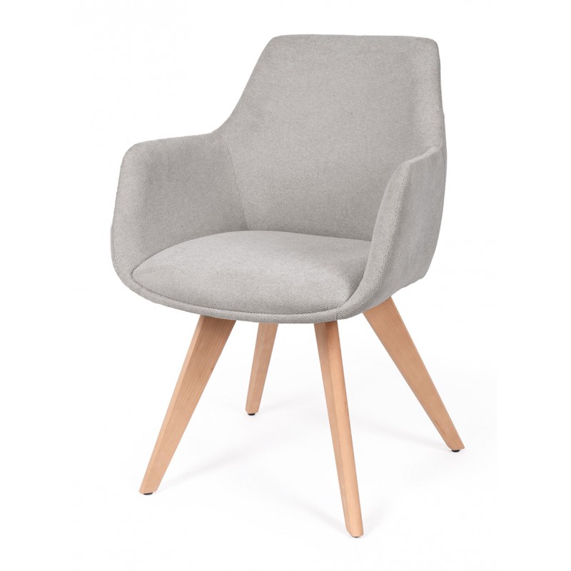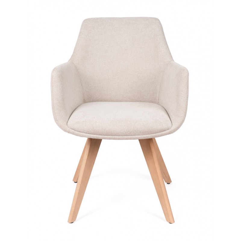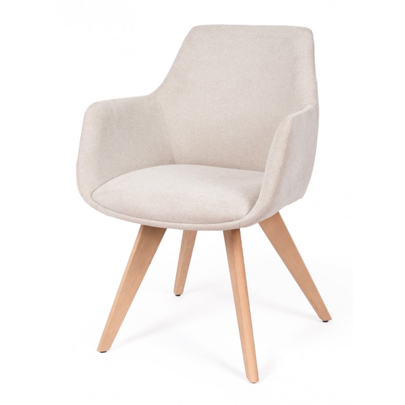 La silla SHARON es una silla de comedor tapizada antimanchas diseñada para uso interior que combina comodidad y líneas suaves en espacios actuales. Su estructura de madera de haya aporta estabilidad, mientras que el respaldo envolvente con brazos mejora la postura durante las comidas.