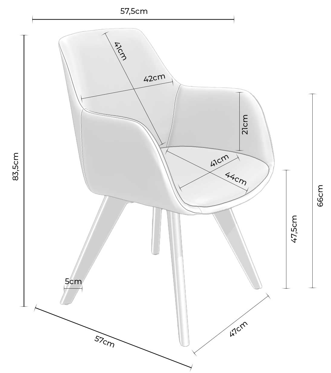 • Altura del asiento: 47,5 cm