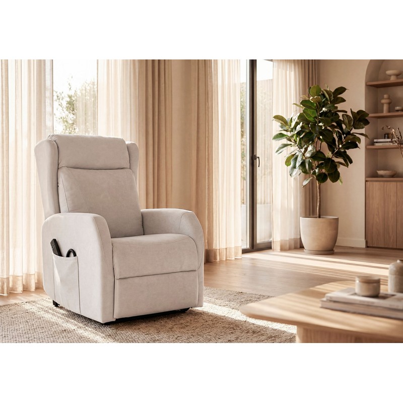 Gracias a su sistema elevable y reclinable, está especialmente indicado para personas que priorizan la comodidad diaria, ya sea para ver televisión, leer o facilitar la incorporación. Su estética neutra encaja fácilmente en ambientes contemporáneos o de estilo cálido.