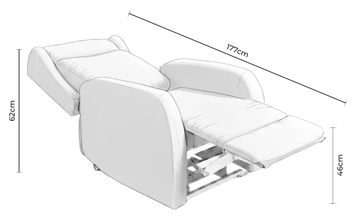 • Dimensiones abierto: fondo 177 cm / alto inclinado 62 cm