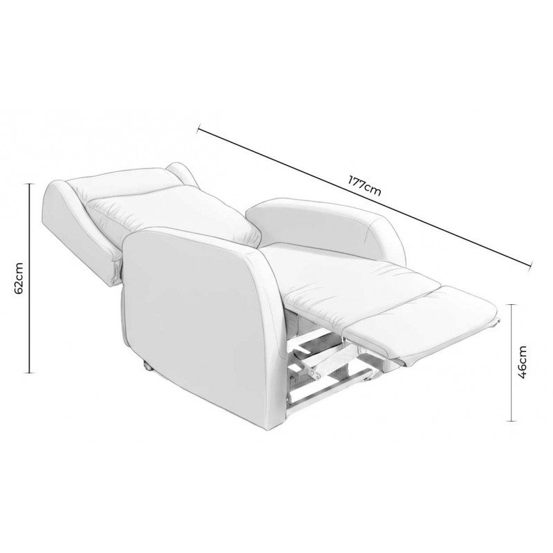 • Dimensiones abierto: fondo 177 cm / alto inclinado 62 cm