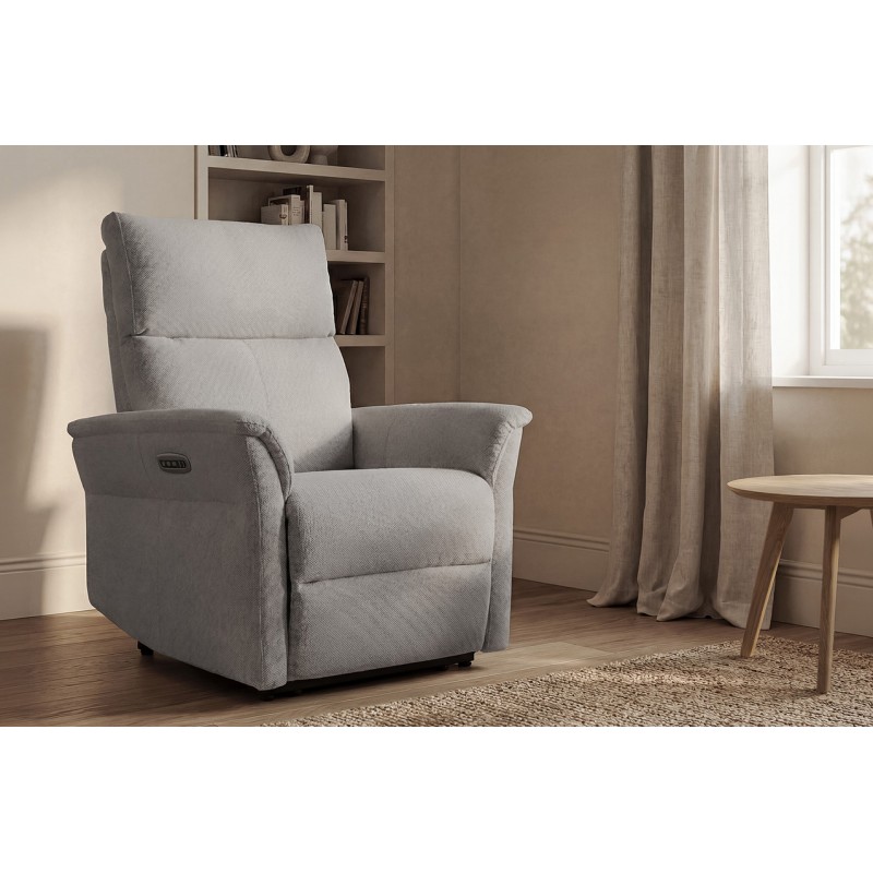 El sillón MISAKI es un sillón relax eléctrico tapizado en tela antimanchas color gris claro pensado para ofrecer comodidad diaria en salones, dormitorios o zonas de lectura. Su diseño de líneas suaves y proporciones equilibradas lo hace adecuado para estancias pequeñas y medianas.