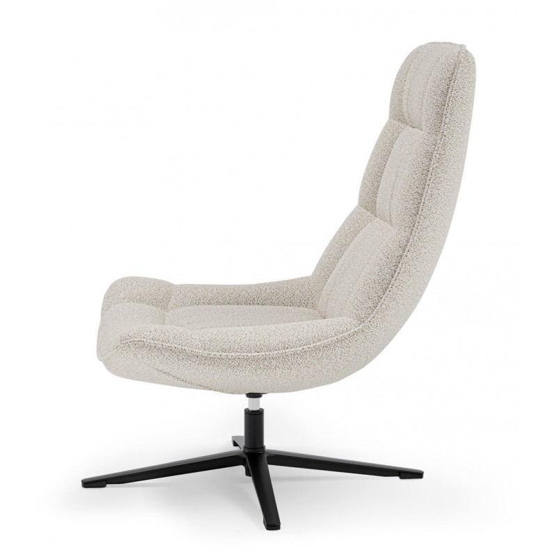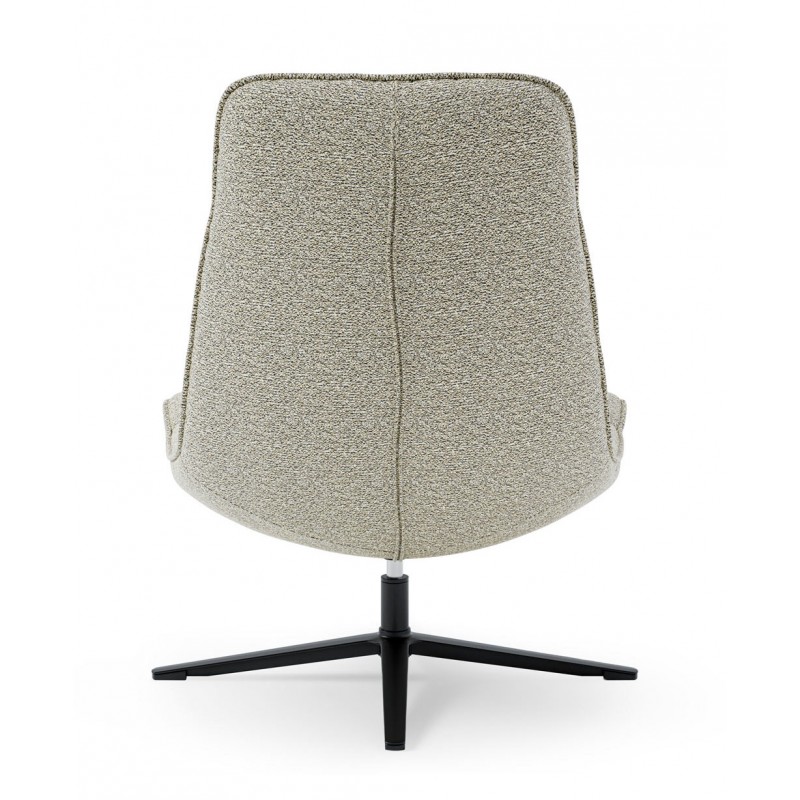 El tapizado en tejido suave y mullido no solo aporta confort excepcional, sino que también realza el estilo acogedor de la pieza. Su respaldo alto y asiento curvado ofrecen un apoyo ergonómico que invita a disfrutar de largas horas de uso.