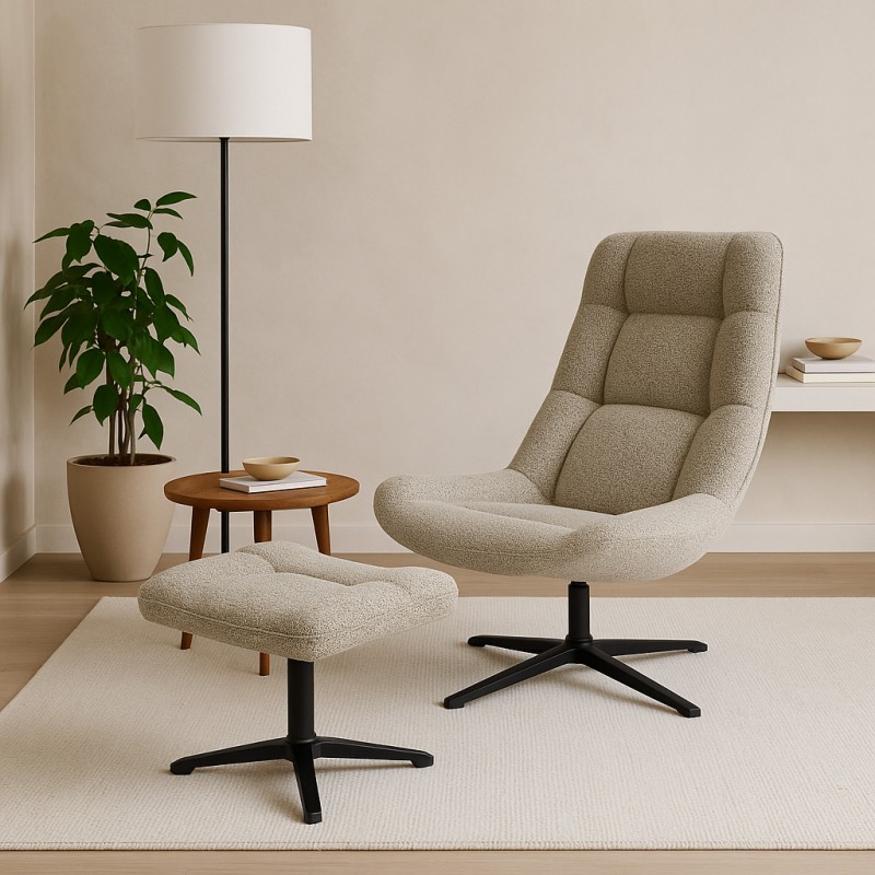 La butaca PARMA combina diseño contemporáneo y funcionalidad para ofrecer una experiencia de descanso envolvente. Su estructura giratoria de 360º proporciona comodidad dinámica, ideal para salones, rincones de lectura o espacios de trabajo relajados.