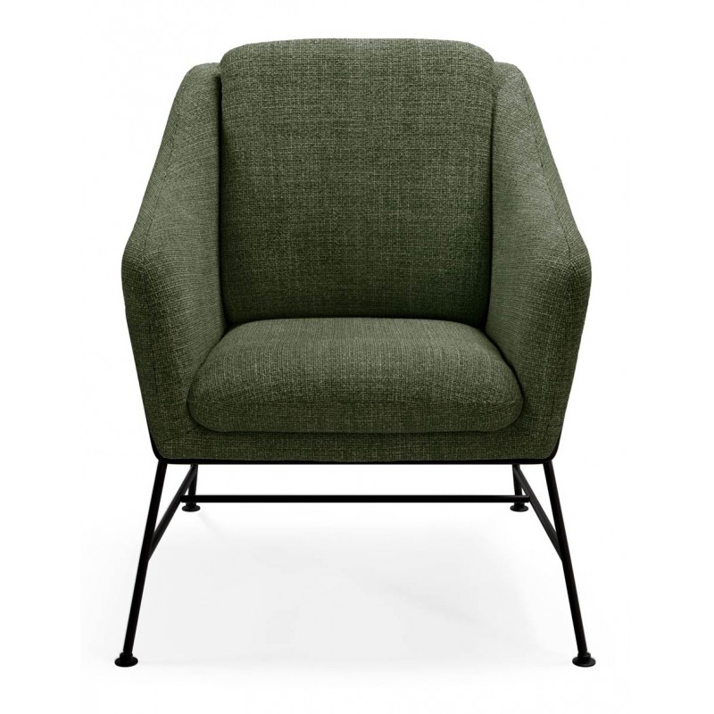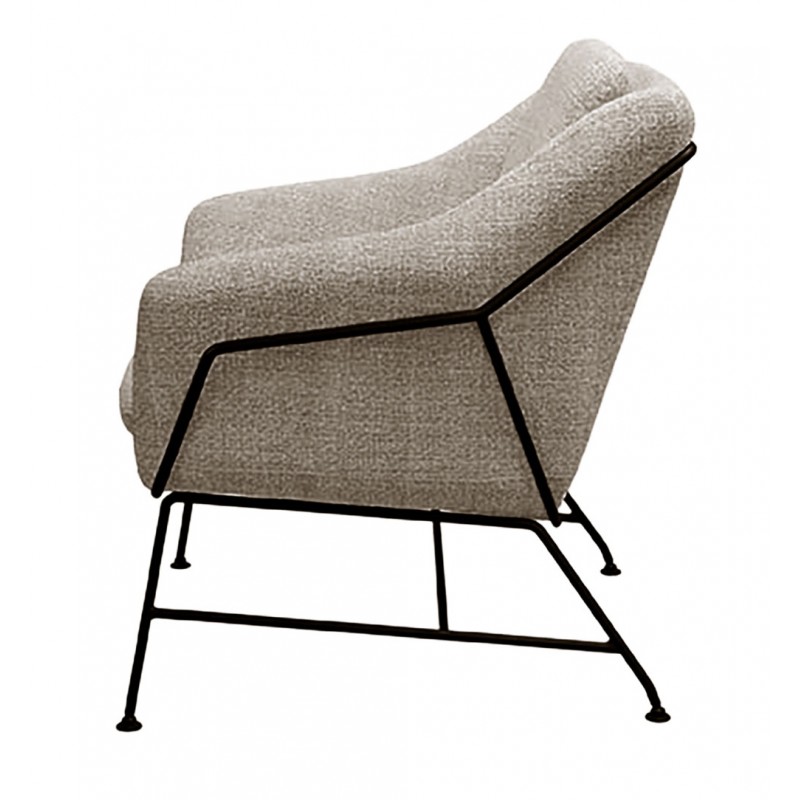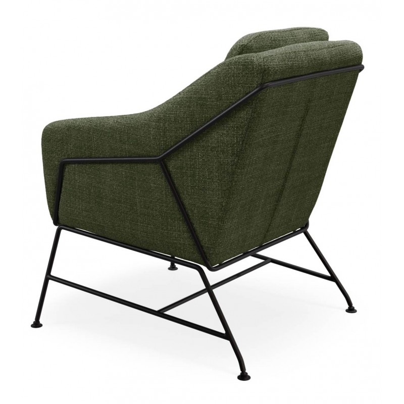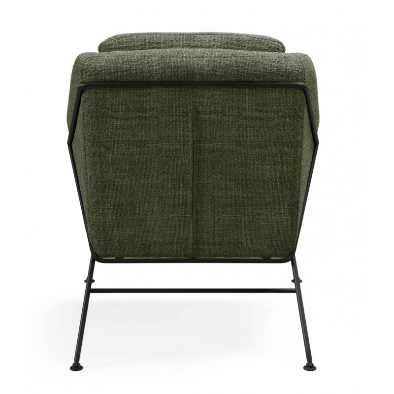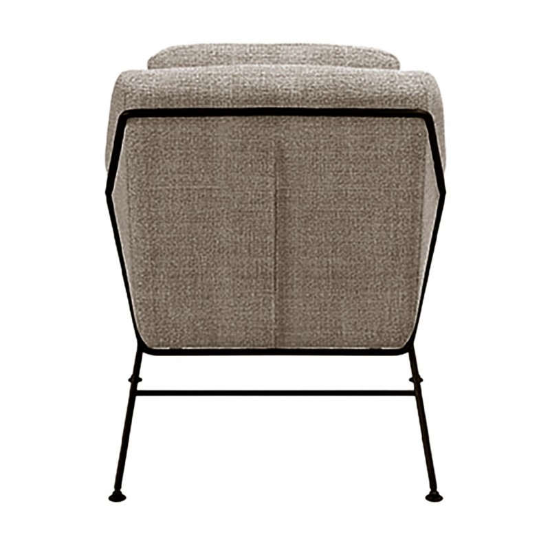 Destaca su estructura metálica visible en la parte trasera, que aporta un carácter distintivo y elegante. Las patas de metal negro añaden contraste visual y solidez estructural, adaptándose con facilidad a estilos modernos, escandinavos o contemporáneos.