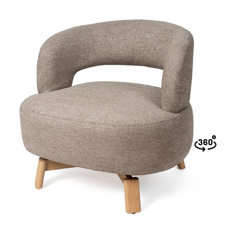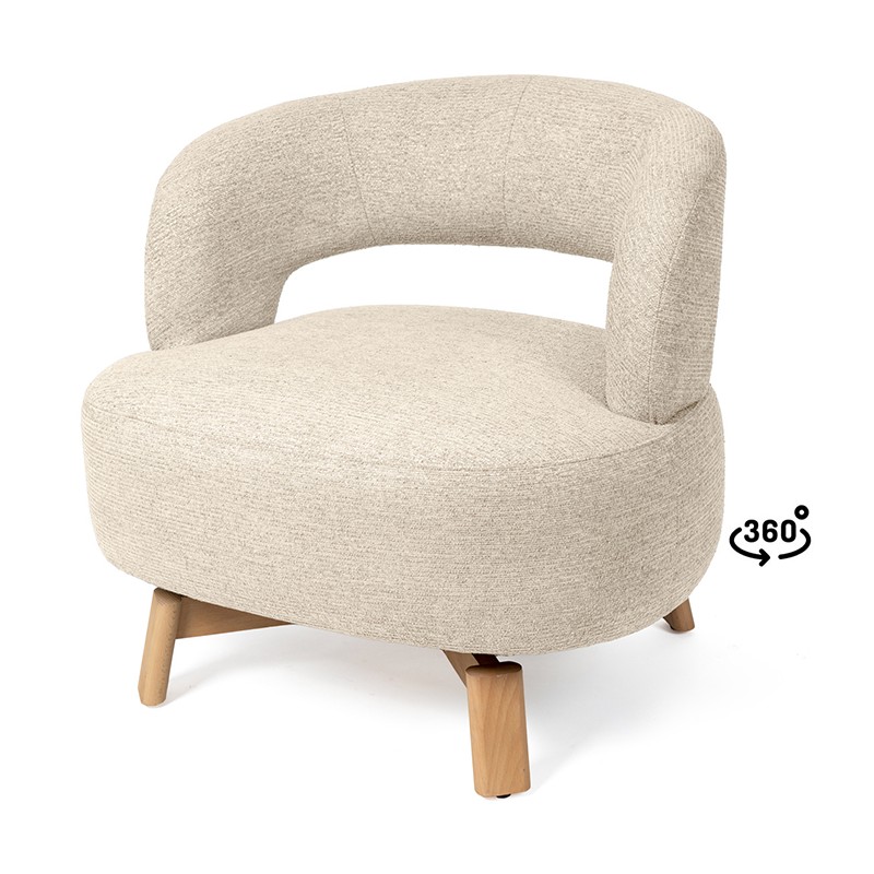 Las patas de madera de haya elevan la estructura aportando calidez y estabilidad. Además, incorpora un mecanismo giratorio 360º, que facilita el movimiento y aporta dinamismo sin perder solidez.
