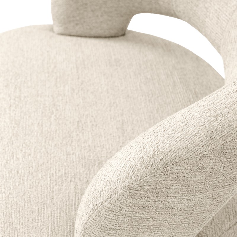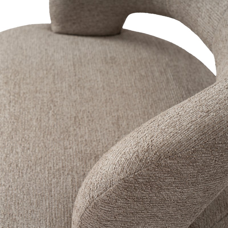 Tapizada en tejido TERRANCE disponible en tonos neutros, ofrece una textura agradable y alta resistencia al uso diario. Su asiento amplio y cómodo la convierte en una opción ideal para salones, rincones de lectura o espacios de descanso donde se busca diseño y funcionalidad.