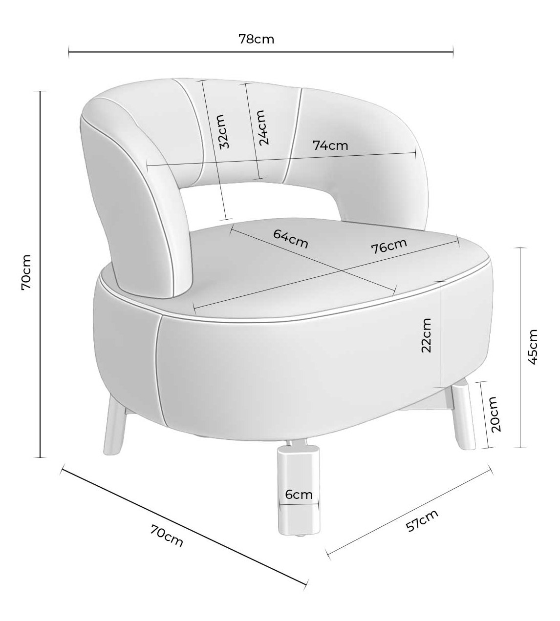 Una butaca versátil, de líneas suaves y presencia elegante, pensada para integrarse con naturalidad en interiores modernos, escandinavos o contemporáneos.