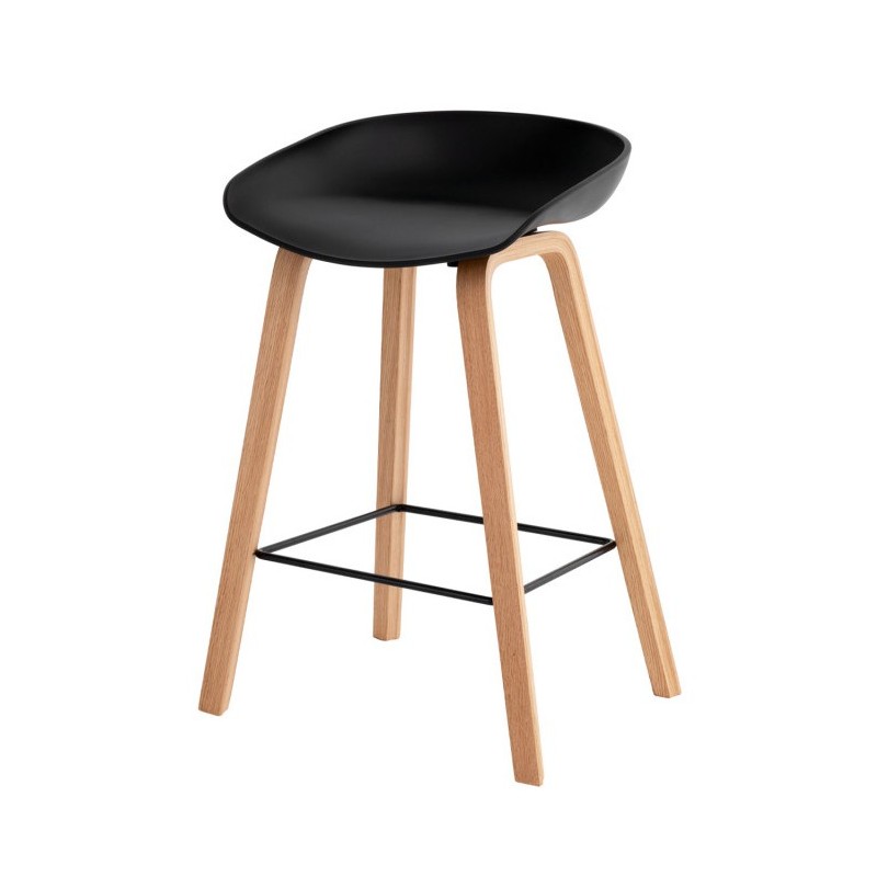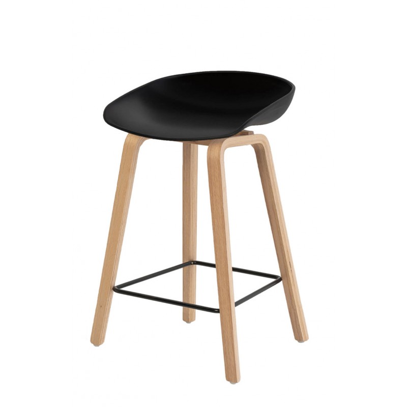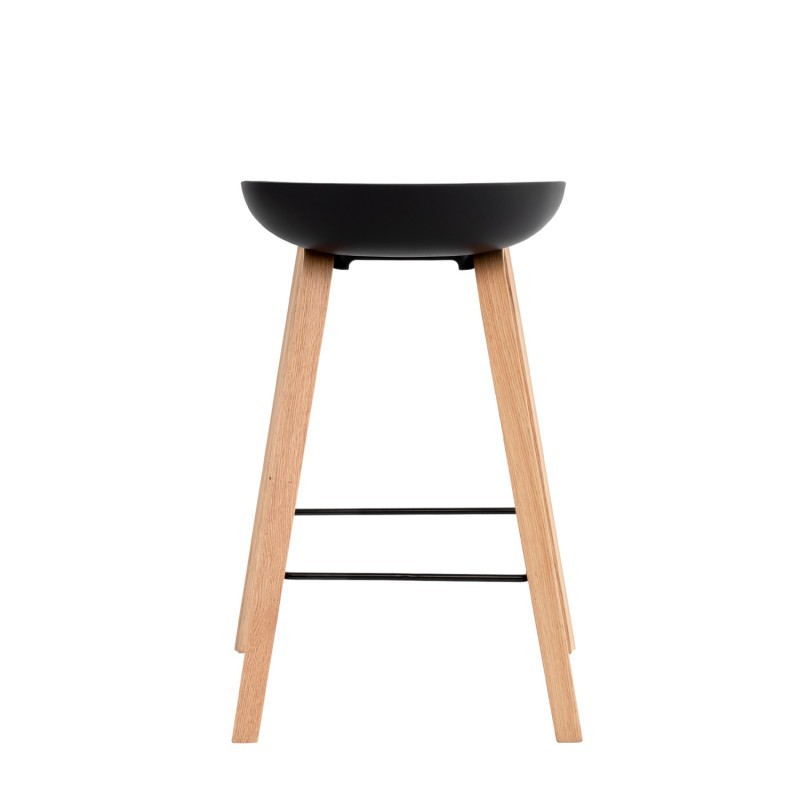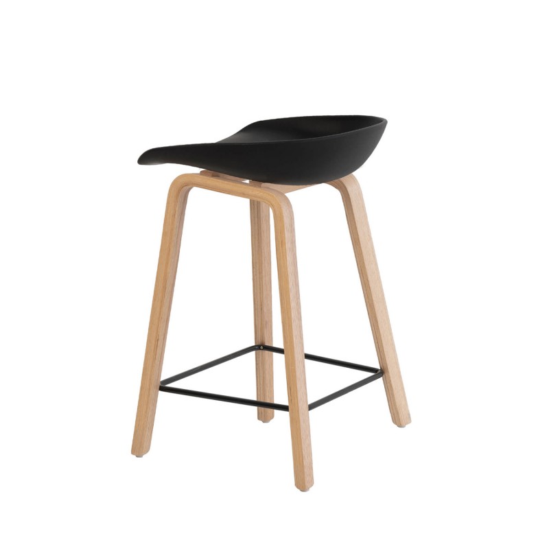Su base de madera natural aporta calidez al diseño, mientras que el reposapiés metálico negro no solo mejora la estabilidad, sino que añade un toque moderno que eleva el estilo del conjunto. Este contraste entre materiales crea una presencia elegante y equilibrada.