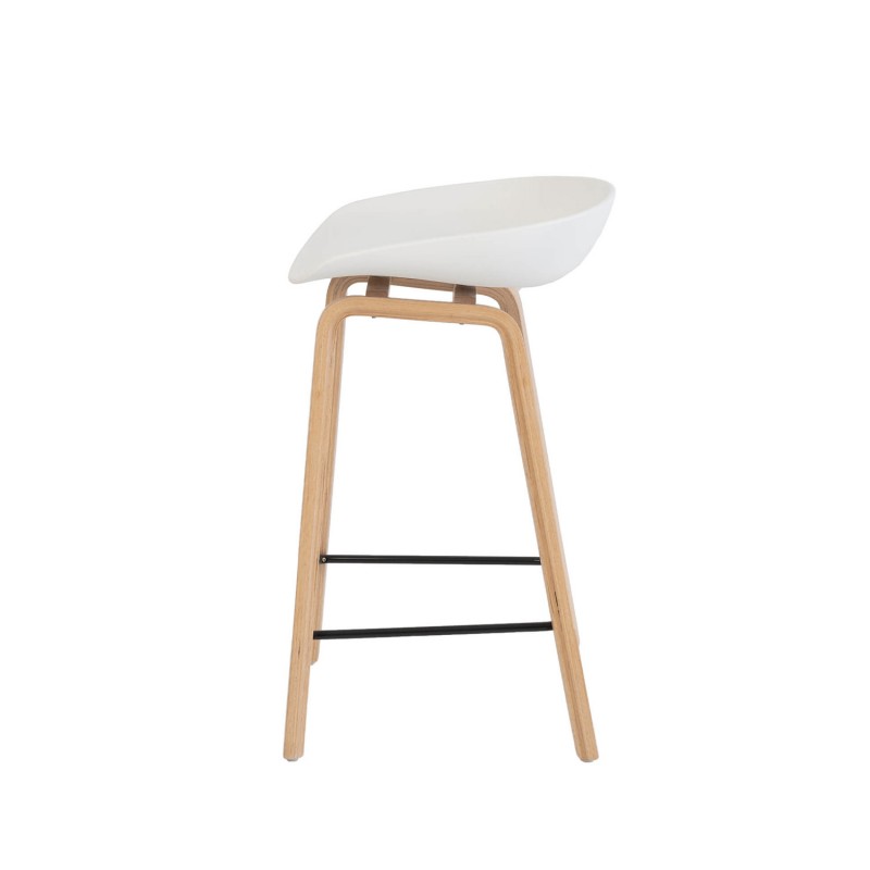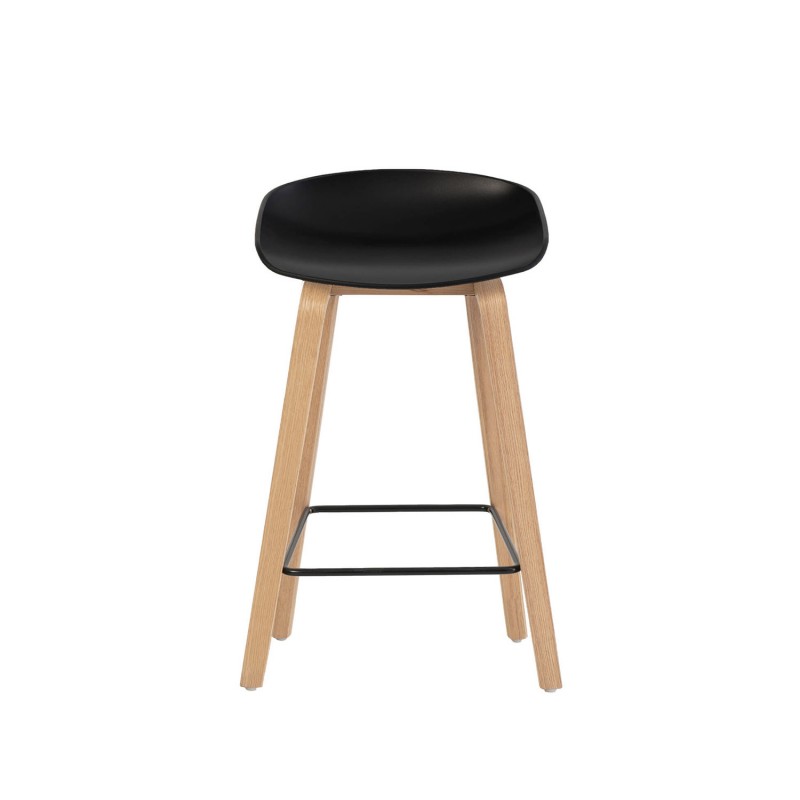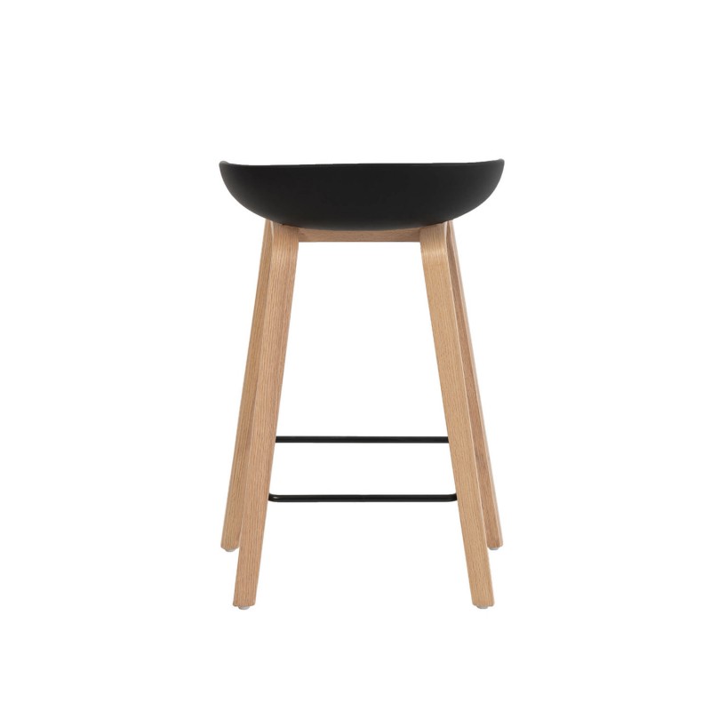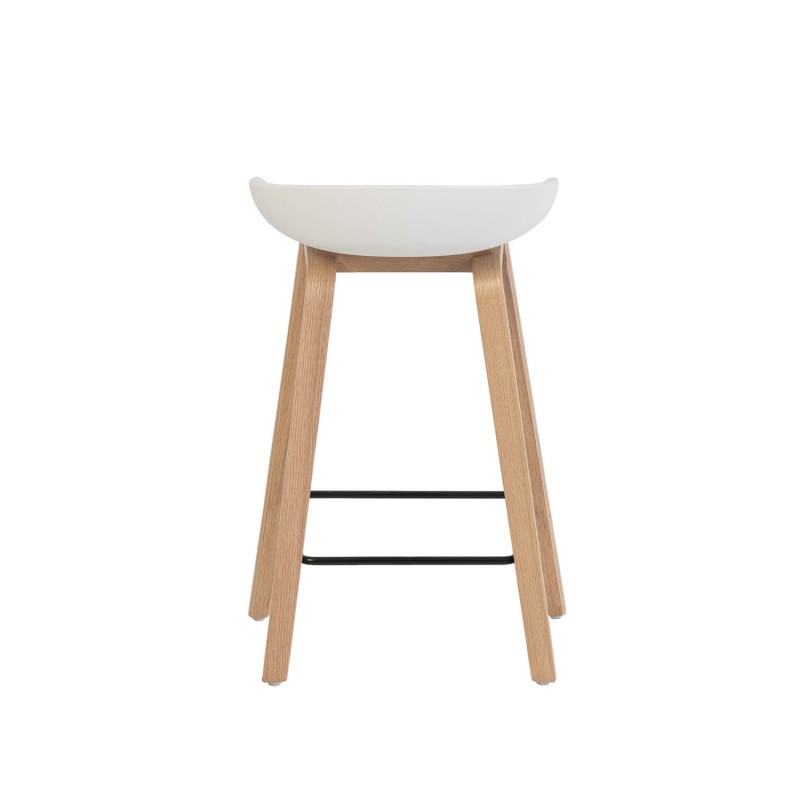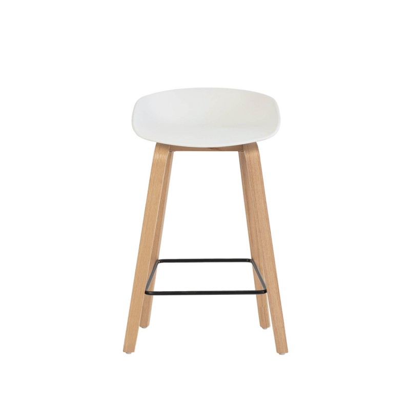 El taburete alto RONIE y el taburete bajo RUTH combinan una estética limpia con una estructura funcional y ergonómica. Ambos cuentan con un asiento de polipropileno, disponible en blanco o negro, ligeramente curvado para ofrecer mayor confort y una postura natural, ideal para el uso diario.