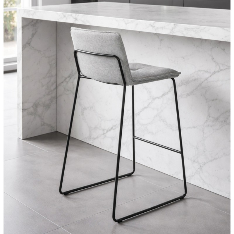 La estructura de metal negro con patas en forma de trineo aporta estabilidad y resistencia frente al uso diario, mientras que el reposapiés integrado mejora la ergonomía al sentarse durante más tiempo. En comparación con taburetes completamente tapizados o con estructuras voluminosas, su diseño abierto facilita la circulación visual y el movimiento alrededor de la barra.