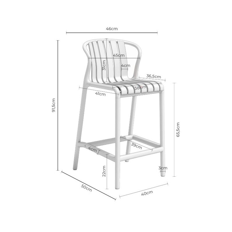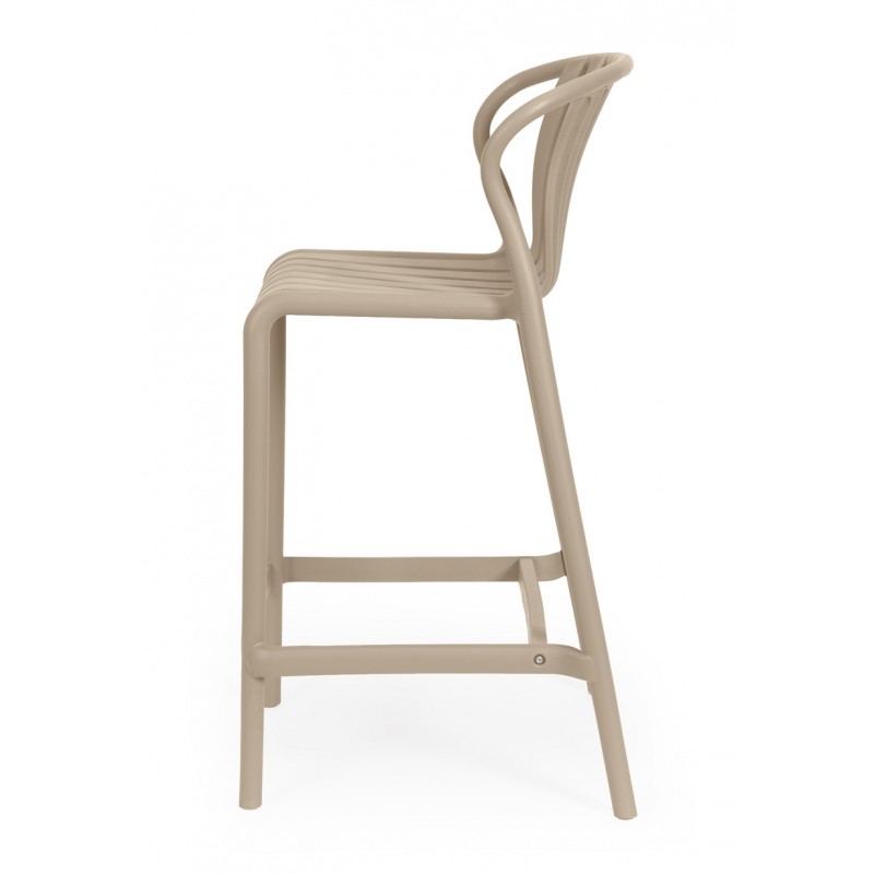 El taburete BASTIAN es un taburete alto fabricado en polipropileno resistente, diseñado para barras de cocina, islas o zonas de comedor informal. Su estructura ligera y su respaldo curvado crean una pieza funcional que se integra con facilidad en espacios domésticos y profesionales.