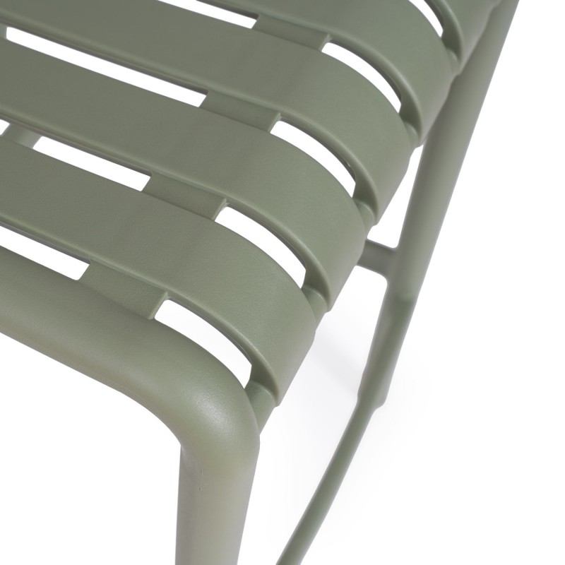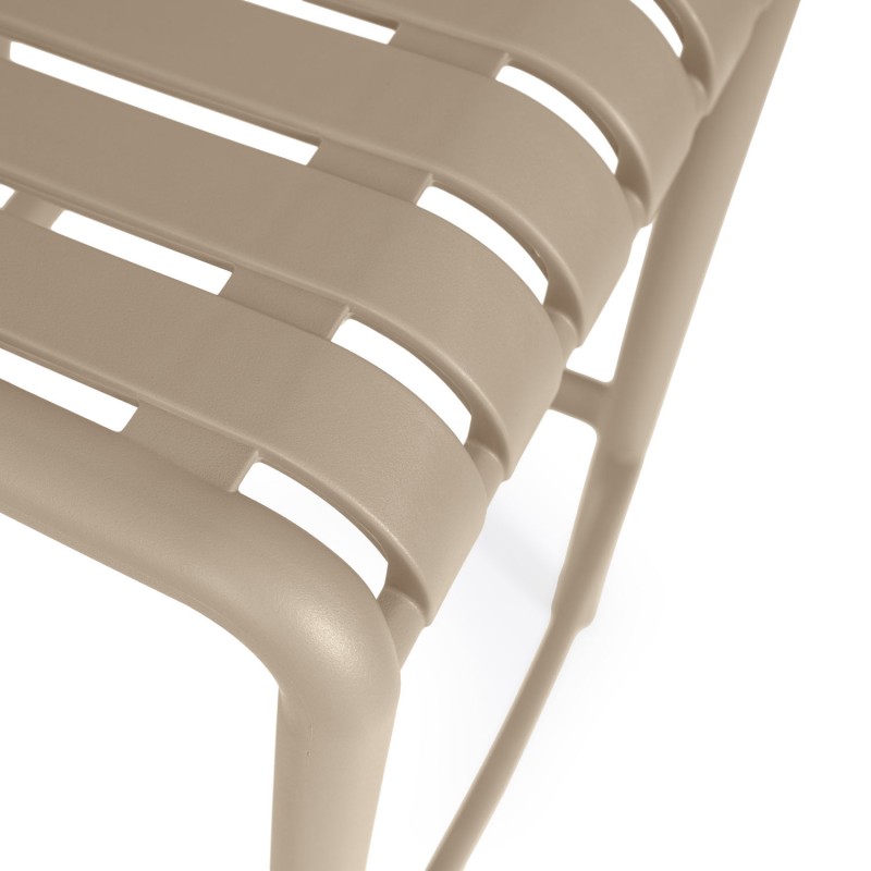 El respaldo envolvente ofrece apoyo lumbar sin añadir volumen visual, mientras que el reposapiés integrado mejora la postura durante el uso. Frente a taburetes tapizados o con estructuras metálicas, el polipropileno ofrece un mantenimiento más sencillo y una mayor resistencia al uso diario.